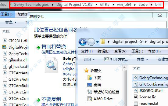 4、将“_SolidSQUAD_”文件夹中的"GehryTechnologies_LM.dll"和"GTCCorLicensing.dll"复制到