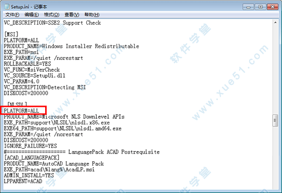 [ACAD]下面的 PLATFORM=NATIVE 改为 PLATFORM=ALL