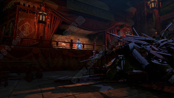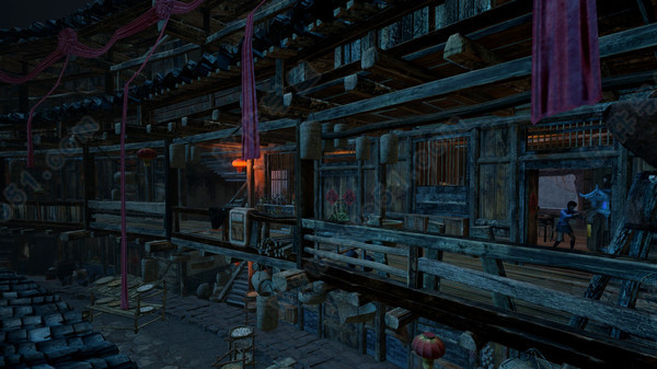 诡秘土楼的设计参考了客家土楼,土楼分为上下两层,下层又分为内中外三层,尽可能的还原了圆形土楼的场景设计。场景里充斥着熄灭的灯笼,与场景中心红丝带搭配,营造出一种说不出的阴森恐怖感。