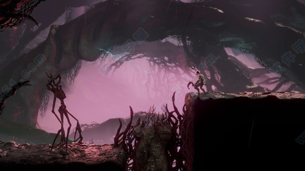 1、初入游戏可以感受到制作组想要表达一种昏暗混乱的感受。碎石凌乱地堆放在沿途的道路上,头顶错落的钟乳石叫人头皮发麻,由近及远的叠层空间愈发体现这片毫无生机的大地上充斥的荒诞。由于采用了3D渲染的技术,令角色和背景的融合更为自然,变相提高了玩家的沉浸感。