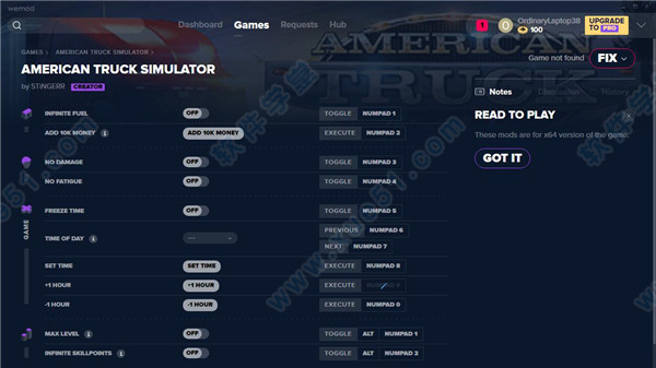 美国卡车模拟修改器游侠版,有了修改器之后玩家们就可以随便的进行游戏体验了,有兴趣的小伙伴们快来下载试试吧!
