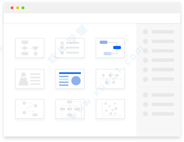 亿图图示是一款非常好用的综合办公图表软件,各位用户们可以使用这款软件进行各种办公方面图表的制作,就比如各种流程图,结构图,网络图等等多种图表,让我们在相关工作上面的效率可以有着更大的提升。大家在办公的时候是不是还停留在使用国外的相关软件,觉得它们的软件功能更加全面强大,但其实这款国产的办公软件已经完全可以取代国外的相关软件了,在功能上面它完全不输给其它的相关软件,但是在使用上面却是更加的方便快捷,毕竟这是国人生产制作的,在使用习惯上面肯定是更加符合我们大众的,绝对要比那些国外软件要用着舒服的多,软件致力于为广大的个体户以及各种企业提供非常有效的可视化图表解决方案,当各位用户们在办公上面遇到各种困难的时候就可以使用这款软件来提供各种解决方法,因为人的大脑并不一瞬间记住很多的东西,在脑子里也不能比较哪个方案比较好一些,所以该软件的图表功能就可以让用户们将脑子中的各种想法方案全部记录到图表当中,通过图表分析就可以了解到哪种方案是最适合我们的,这样一来我们遇到各种不同的困难都能够找到最佳最优质的解决方法,帮助用户们尽情的释放自己心中的想法以及灵感,最主要的是软件还拥有着非常多实用的模板,包含了商业,教育,软件,工程以及设计多个方面,当用户们不知道想要使用哪款图表的时候就可以来到这个模板库当中根据类型进行选择即可,非常的方便轻松,除此之外软件在全新的11版本当中新增了许多小功能,比如个人模板,用户们可以在模板当中进行创建各种模板,这样当我们下次想要使用的时候就可以直接使用自己创建的模板,而且还新增了许多不同的图表,能够进一步的满足广大用户们的使用需求,在操作界面上面也是有着不错的优化,让整个界面变的更加的简洁,而且还能够自由切换软件使用界面的颜色皮肤,可以挑选自己喜欢的皮肤来进行工作,让我们在工作的时候身心愉悦,效率也会有不错的提升,在此小编就给大家带来了