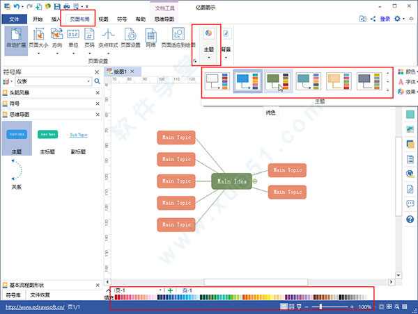 4、思维导图菜单中,可以通过软件内置的“思维导图主题”快速美化主题。
