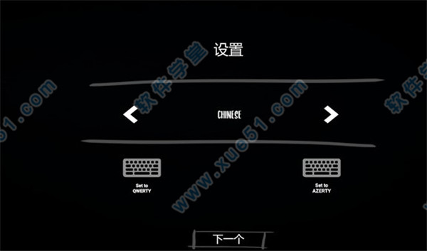 3、这个时候我们就进入到游戏中啦,如图所示,我们在下方设置中可以点击左右键将语言切换选择中文语言,并点击下一个。