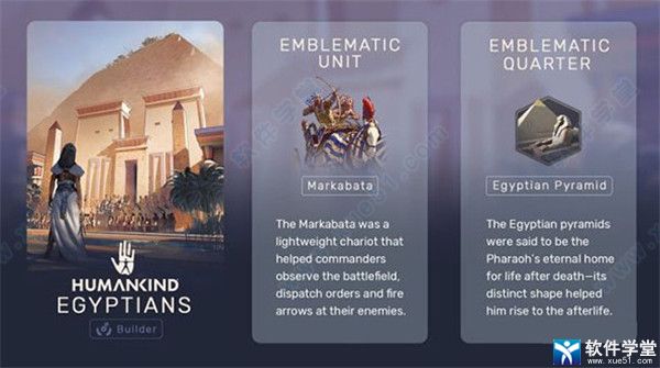 埃及的特殊兵种是Markabata,这是一种轻便的战车,能够让指挥官了解战场态势,发号施令,攻击敌人。