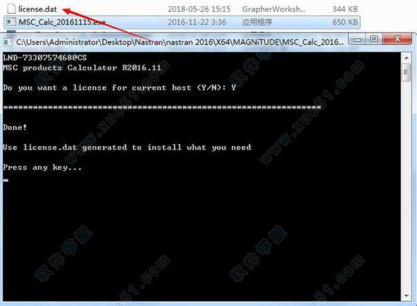 1、运行MSC_Calc_20160430.exe,输入Y再按回车,等待生成一个license.dat许可证文件