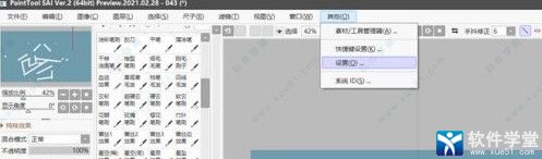6、再次打开SAI2 2021软件,点击上方的其他菜单选项里的设置打开,对数位板进行相应的设置下,确定,之后再用数位笔进行绘制即可产生压感的的绘制效果。