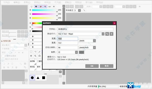 1、首先,打开电脑上已经装好的SAI2 2021软件,并新建一个随意大小的新画布;