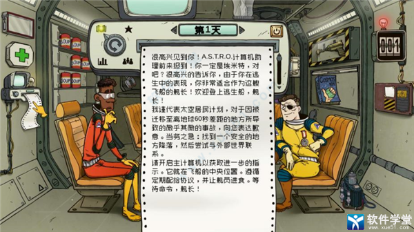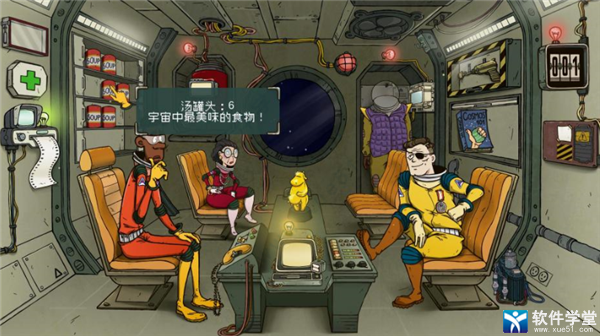冒险解谜类游戏。这是一款主角只能生存60s的游戏,这是一个原子太空的时代。你带领着一队毫无准备的宇航员乘坐火箭升空,在进入太空站之后你们得知在60秒之后空间站就会爆炸。你需要在一分钟只能搜刮尽可能多的有用物资(当然在匆忙之中你收集的大部分物资可能都是垃圾)并且在规定时间内逃离这里乘坐上你的太空飞船然后不断探索新的世界,寻找可以生存的空间。,不过有些你认为是垃圾的物品可能不知道在什么时候就会派上大用处,例如那只玩偶袜子就可以带在身边。而在这一场太空旅行之中你的队友可能都不太正常,有喜欢冷战的偏执狂或者带着太空头盔的蟑螂。你需要时刻保持你的舰队队友的情绪不要失控,虽然他们不太可能杀掉你,但是几率一定不是0%。而且他们之间的关系可能会变得十分紧张,一旦起内讧了,他们甚至会将对方丢进太空之中。你能保证你的智慧以及情商都足够让你们生存下来吗?那就快来下载