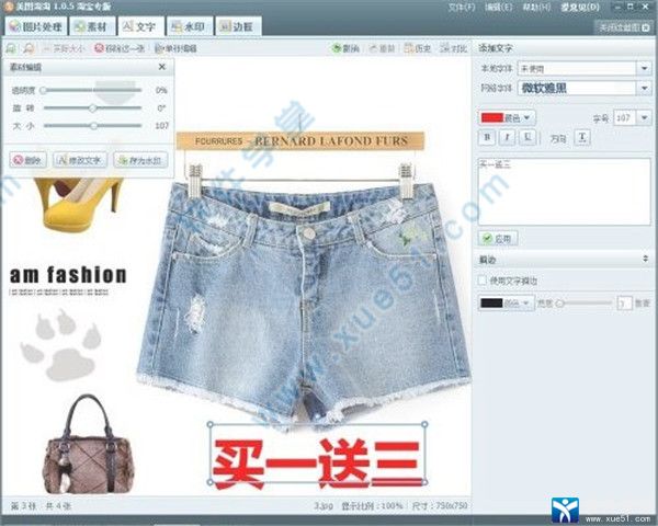 5、专为网店卖家而设计:这款图片处理软件是一款专为网店卖家设计的图片处理软件,预置海量网店专用素材,可同时处理多张图片,所有操作都是“一步动作,批量同步到所有图片。