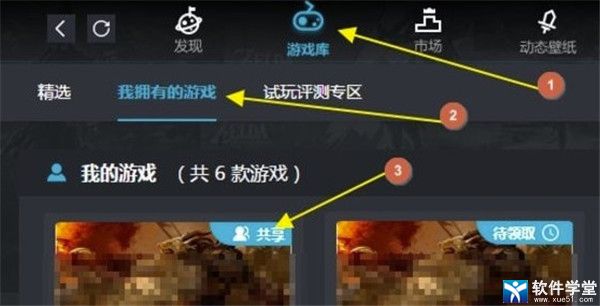 1、登录游戏助手,进入"游戏库"我拥有的游戏"。