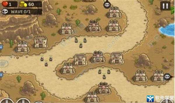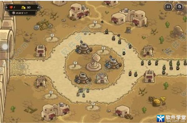 攻略:中央先造3个炸弹塔,三角排列,增援冷却即用,个别漏网的别紧张,后部有一个NPC箭塔会帮你解决,有钱了就在中央补步兵塔,先补上面或者下面,然后是后面,配合增援兵力就轻松守住了,有钱了就酌情补个炸弹塔,最后1小波敌人需要用增援兵力隔断阻挡一下即可。