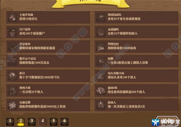后羿射日:让十字弓要塞释放10000发箭矢。 打法:弓箭流玩家应该很容易完成这个成就,当解锁十字弓要塞后,爆十字弓塔,升级连弩射击技能刷快速连射,可以较快的达成这个成就。