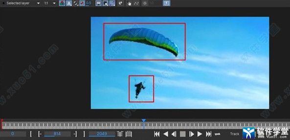 1、如下图所示,在示例的素材中,包含了降落伞与人物两个主要对象。这两个对象的运动路径是一致的,因此可将两者的跟踪数据链接使用。