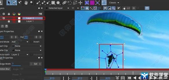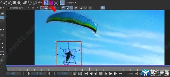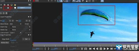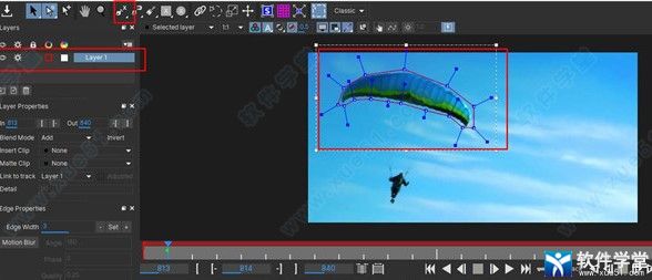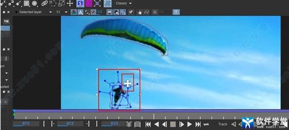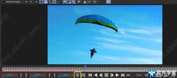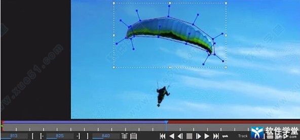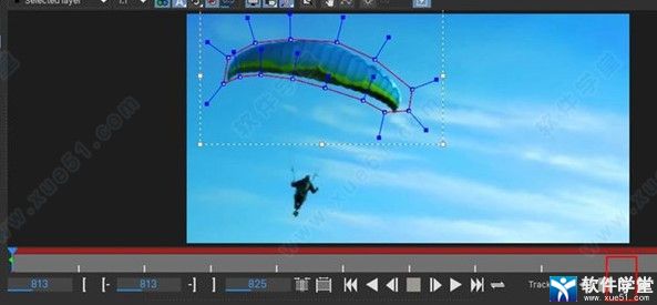 1、完成样条线的绘制后,可以使用时间轴控件指定跟踪的帧数范围。由于当前素材的帧数较多,我们选取了帧813-帧825的范围进行追踪。