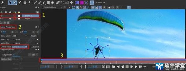 2、在图层属性(Layer Properties)的“链接到轨道(Link to track)”选项中,选择“图层1”