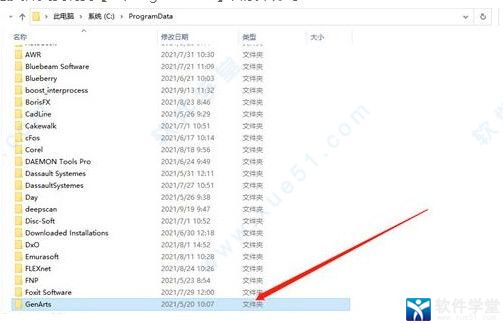 6、再把GenArts文件夹复制到系统ProgramData目录当中。