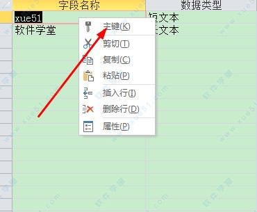 3、选定你需要定义为主键的字段右键,然后点击“主键”,你的主键就定义完成了