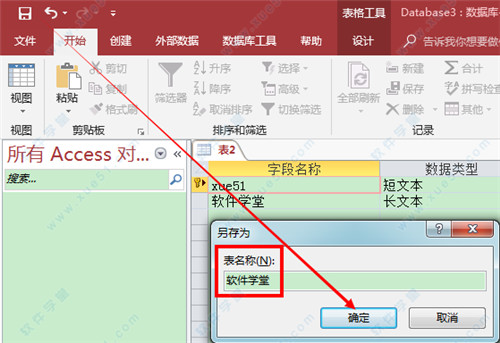 4、点击左上方的“保存”按钮,在弹出的对话框中命名你创建的这个表的名称