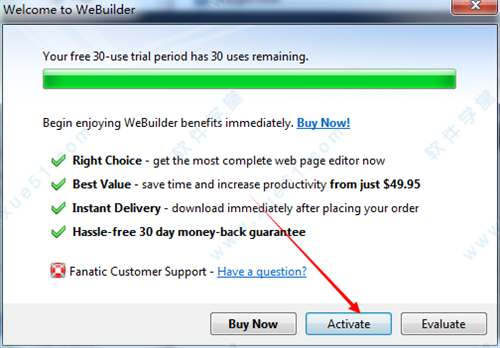 3、双击快捷方式运行程序,初次进入需要注册,点击activate