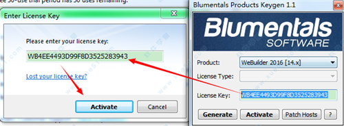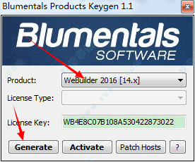 4、打开解压文件中的“Keygen.exe”程序,将product改为:webuilder 2016,再点击generate
