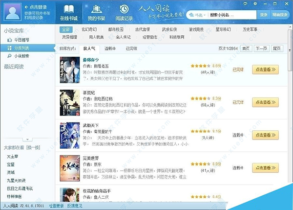 3、今日推荐页面添加周榜、月榜、搜索榜、点击排行榜,为人人书友推荐更多经典小说。