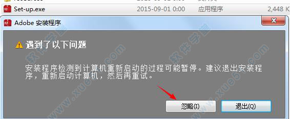 1、运行安装程序,选择忽略