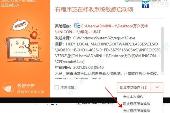 杀毒软件提示点击允许操作。