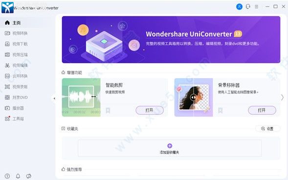 UniConverter13是一款非常好用的媒体格式文件转换工具,各位用户们在日常的办公生活当中肯定是避免不了要使用到各种不同格式的文件,有时候我们需要不同的格式就可以来使用这款转换工具来帮助自己完成相关的操作。软件的功能十分的齐全,它可以帮助用户们完成视频录制,视频传输,CD刻录以及格式转换等等功能,能够满足各位用户们的不同使用需求,并且软件的操作界面非常的简洁干净,不会有其它任何垃圾信息打扰,功能排序十分的整洁,让我们想要使用的功能可以很快的就找到,非常的快捷好用。除了最为基本的转换功能之外软件还可以当做视频处理软件来使用,可以对视频进行智能裁剪,背景编辑以及各种水印编辑等等,最大可能解决了用户们的各种办公需求。在软件的全新版本当中还新增了许多实用的功能,比如现在可以进行视频下载,复制好视频链接之后就可以自动解析进行下载,并且还可以批量进行下载,非常方便。在此小编就给大家带来了