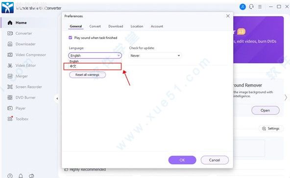 UniConverter13怎么调中文