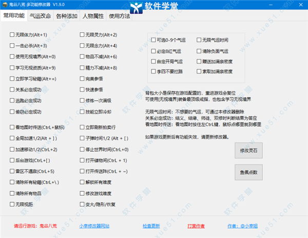 1、鬼谷八荒小幸姐修改器目前只有简体中文语言,在任何系统上均显示简体中文,不会出现乱码。