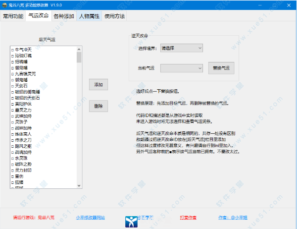 后天气运和逆天改命:添加/删除 后天气运、修改、替换逆天改命。