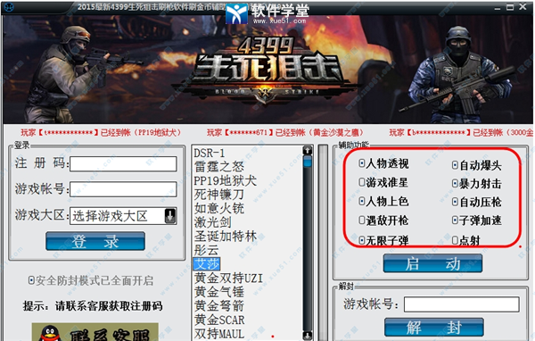 4399生死狙击刷金币修改器(4399生死狙击辅助)是一款功能全面的好软件,是一款生死狙击游戏的辅助工具,非常实用,是一款不可多得的好软件,4399生死狙击刷金币修改器提供了一键刷金币、激活Ar15s和刷新游戏界面功能,这款软件能够同时兼容多种强大功能,也可以当做桌面版玩游戏,后续将会添加更多功能,敬请期待,本款软件绿色安全,完全可放心实用,有兴趣的小伙伴们千万不要错过哦