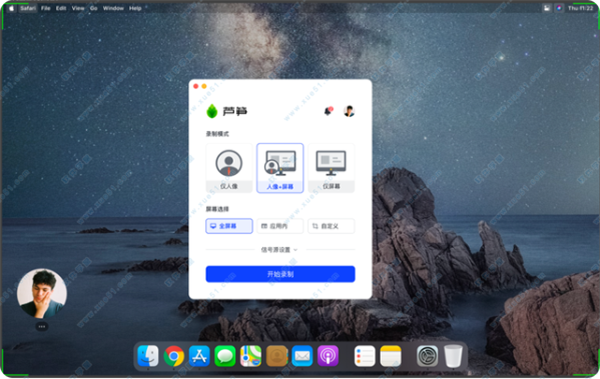 芦笋极简录屏支持同时录制人像、声音、屏幕。