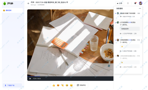 4、录制完成后,视频会直接上传到「我的空间」,可以把这个文件分享到 QQ 群或微信群,老师学生家长都可以在线观看。平台也提供了「下载」功能,支持把文件下载到本地。