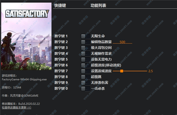 1、幸福工厂steam九项修改器中的“无限物品”只对数量大于1的物品生效。