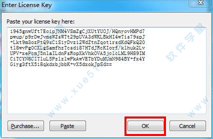 8、回到注册码输入窗口,将复制的注册码粘贴到空白处中,并点击Ok