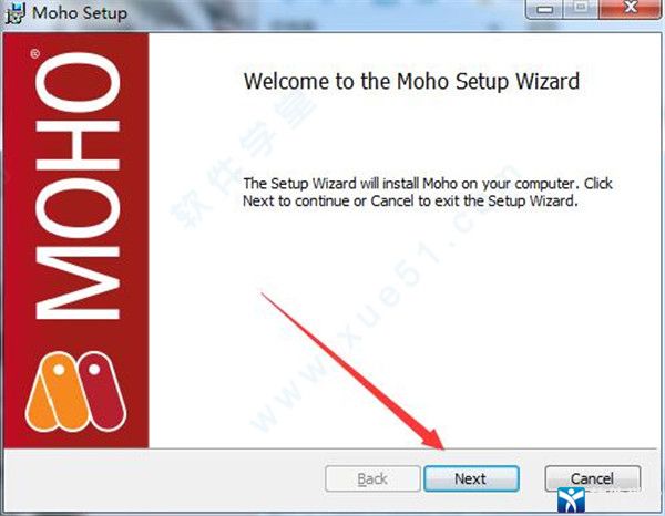 1、下载Moho Pro安装包,解压缩并运行安装,点击Next下一步。