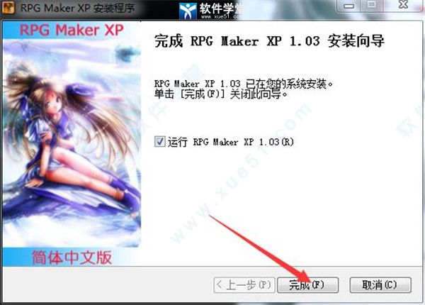 7、安装RPG Maker XP完成,点击完成,即可。