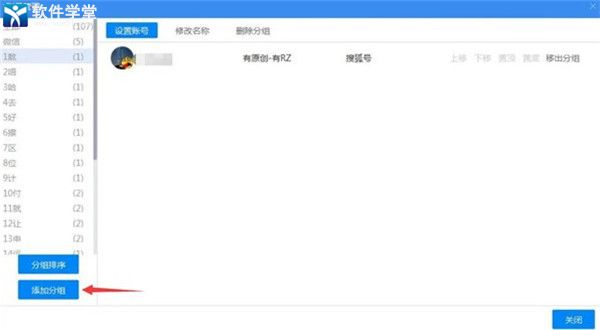 2、然后,进入软件的账号管理界面。用户将自己已有的自媒体账号进行分组排序。也可以点击“添加分组”继续添加自媒体账号。