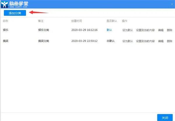 4、在默认分类管理的界面中,如果已有的分类不能满足自己的需要,那就点击“添加分类”选择对应的发布平台,并将其设置为默认。