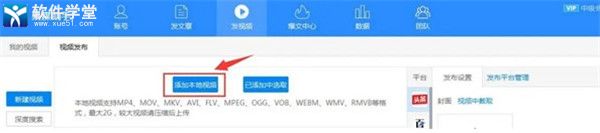 6、接下来,点击易媒助手的“发视频”,切换到视频发布的界面,点击“添加本地视频”。