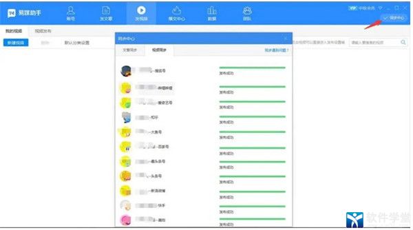 9、最后,用户点击软件主界面右上方的“同步中心”便可查看内容发布的进度详情。如果发布有误,软件会有相关的提示。