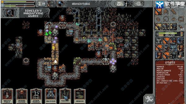 在循环英雄游戏中,当我们以长线单局贼为目标的时候,推荐用森林或灌木丛放,然后挨着营火或者村庄,把魔像的出口封死,不让出血魔像(也就是说如果不带村庄的话只能出一个血树,容易卡手)。