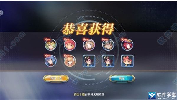 一、新手十连进游戏过新手引导会出现第一次10连召唤,这个是可以重新选择的,大家看到有神乐就行了: