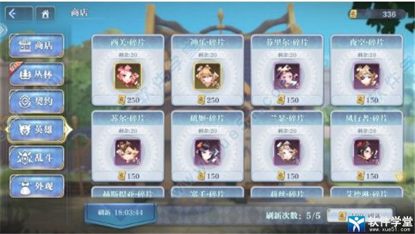 英雄商店:公主>光耀>火女>风魔>守望>海伦>