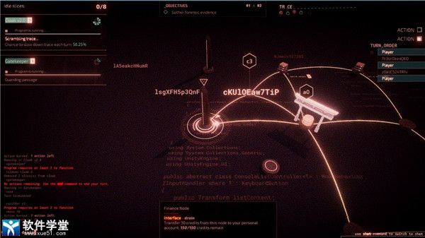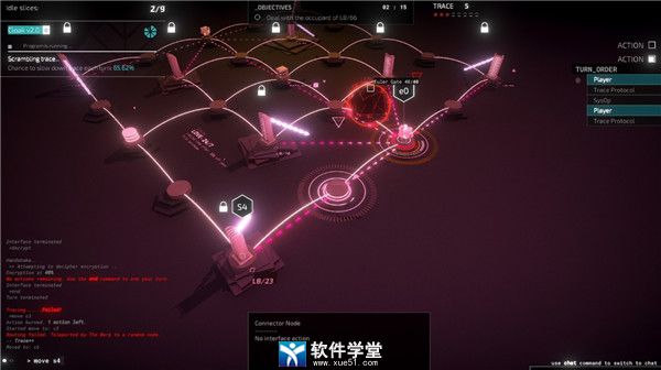 午夜协议是一款很优秀的黑客题材游戏。画面风格很带感,界面逼格很高,仿佛自己真的是个黑客大师。整个游戏只能用键盘控制,入侵网络时必须通过命令行键入各种指令。虽然表面看上去很硬核,但其实不难上手。游戏的普通模式是回合制的,而且有方便的自动补全功能,可以说是对手残党很友好了。游戏本质像个地牢探索的RPG,并不需要任何计算机网络的知识就能玩。在网络节点组成的地图上移动,对付各种敌人和陷阱,完成任务。进入任务之前选择工具卡程序,就是选择在任务中能使用的能力。游戏的痕迹条基本就相当于玩家的血条,如果没启动隐身程序每个回合都会涨一点,张满就会被定位,窃取网币,甚至game over,因此前期关卡基本是与回合数赛跑。大部分关卡的敌人是隐藏在节点之间的ICE,可以有多种不同的应对方式,可以小心翼翼移动前先扫描,也可以一路横冲直撞,可以用破解程序打爆,也可以想办法绕过去。不过后面解锁了回声S系列硬件,就能直接高亮有ICE的节点,一下简单很多。也有一部分关卡会有系统操作员作为敌人,体验黑客之间的紧张博弈。