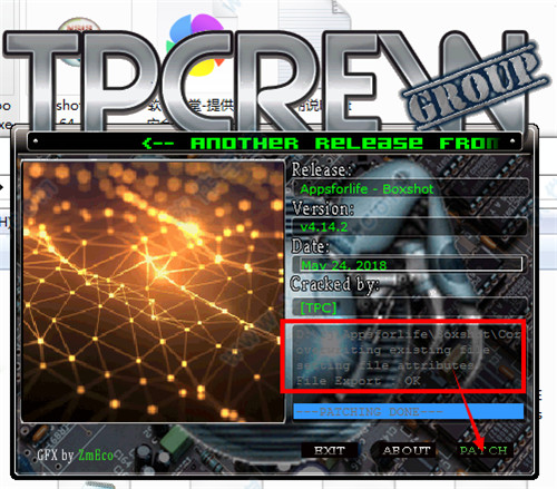 4、运行破解程序,点击patch,出现下图提示即可退出