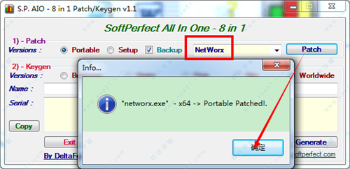 4、运行注册机,选择软件,点击patch,弹出修补成功提示,点击确定