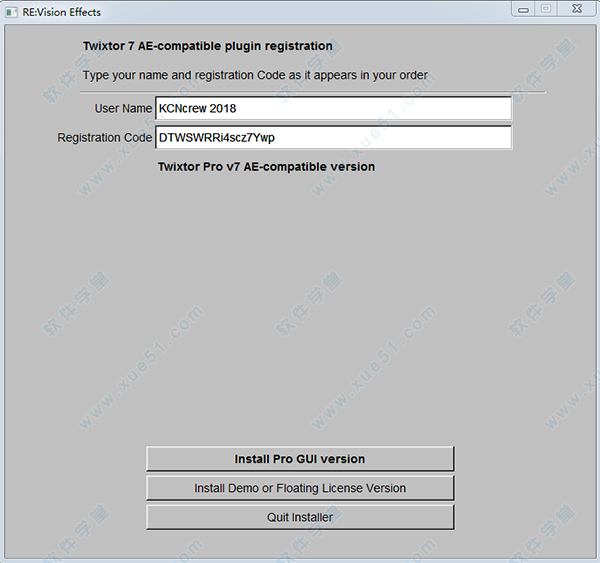 3、安装到这,在注册信息页面输入注册信息:(Name:KCNcrew 2018,Serial:DTWSWRRi4scz7Ywp),注册信息填入完之后,点击Install Pro GUI version进行安装